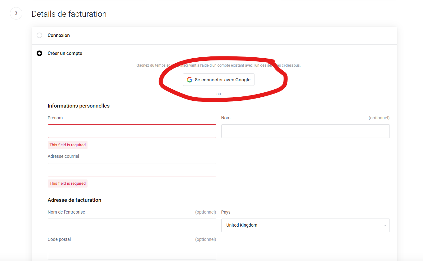Soit vous décidez de créer un compte traditionnellement en renseignant toutes vos données personnelles, soit vous cliquez sur "Se connecter avec Google" pour gagner du temps, ce que nous allons faire dans notre exemple.