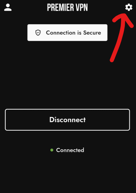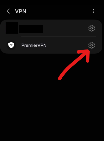 Sélectionnez bien PremierVPN, en touchant la roue crantée à droite.