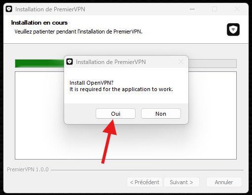 OpenVPN est nécéssaire pour le bon fonctionnement de l'application, alors cliquez sur Oui