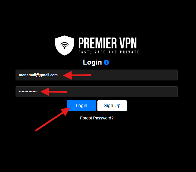 Ouvrez l'application PremierVPN, il vous demanderons de vous connecter.